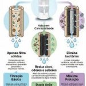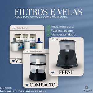Sistema de Filtragem: Utiliza vela cerâmica tradicional, eficiente na retenção de impurezas e partículas sólidas.
